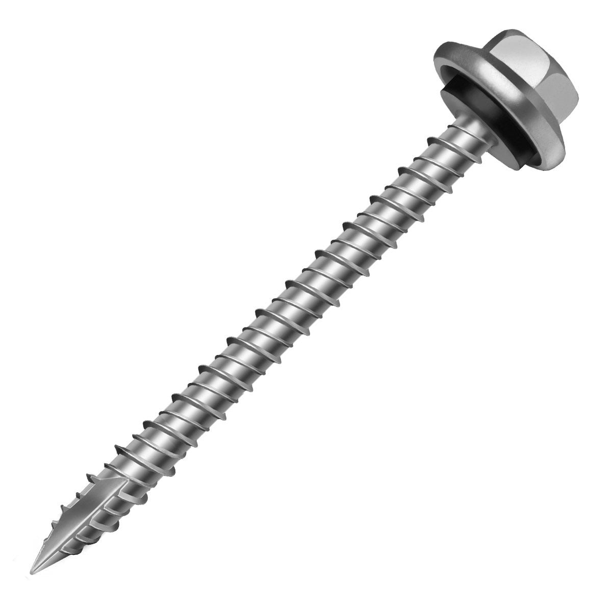 Parafuso cabeça sextavada flangeada, com vedação EPDM, tipo madeira ponta 17, fabricado em aço carbono.