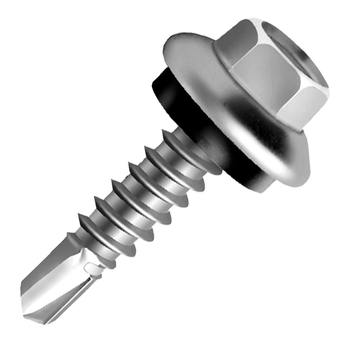 Parafuso cabeça sextavada flangeada, com vedação EPDM, tipo telha ponta broca, fabricado em aço carbono.